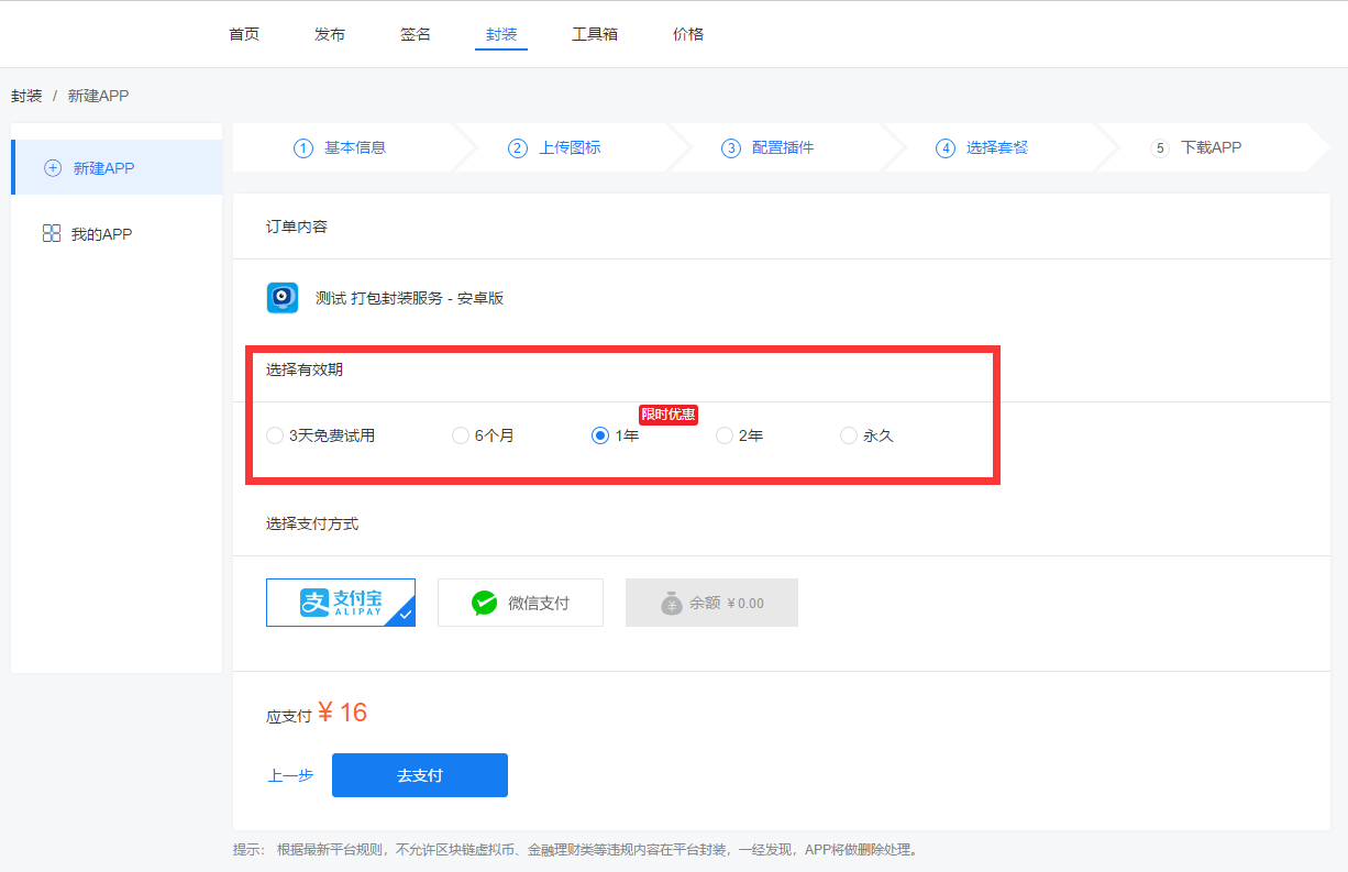 封装APP价格和套餐内容,请参考:价格套餐
